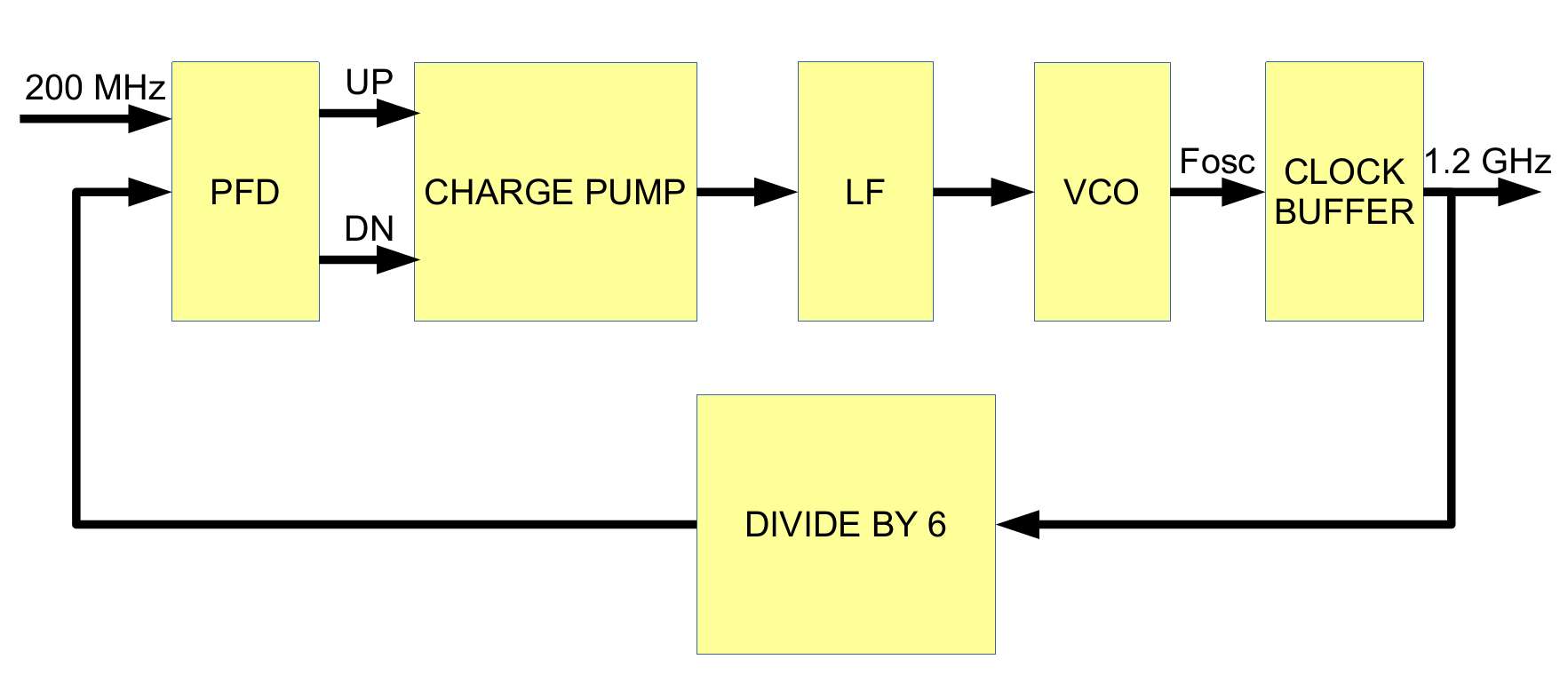 This PLL consists of Digital Phase Frequency Detector (PFD), Charge Pump, Loop Filter (LF), current-starved Voltage Controlled Oscillator (VCO), Clock Buffer and the Divide-by-6 Module.